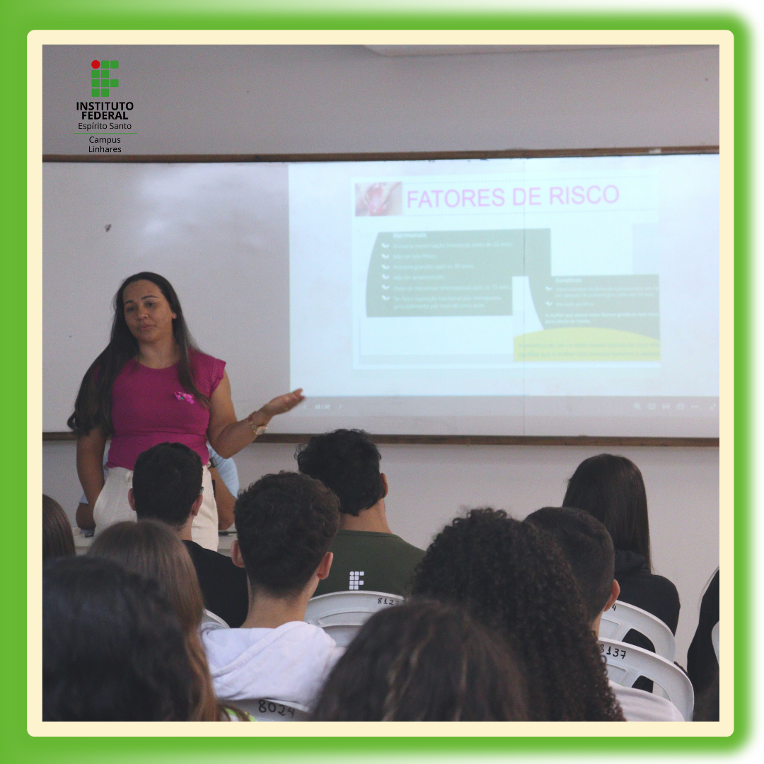 Iniciando as celebrações do Dia do Servidor Público, a Coordenadoria Ambulatorial do Ifes Campus Linhares realizou a palestra “Saúde da Mulher e Prevenção ao Câncer de Mama”, em conscientização ao Outubro Rosa, mês dedicado à prevenção do câncer de mama.