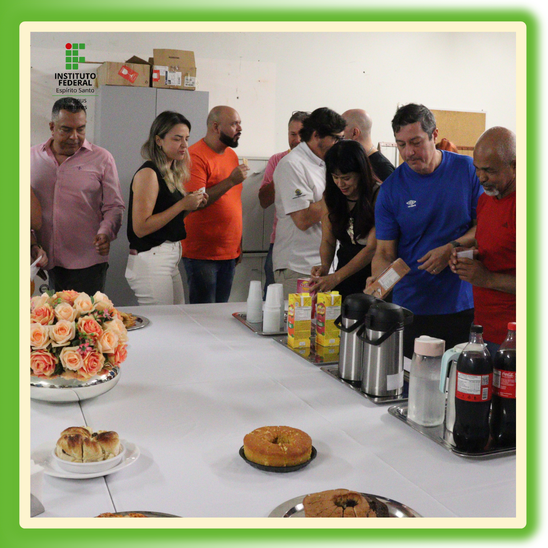 Na última sexta-feira, 18 de outubro, o Ifes Campus Linhares celebrou o Dia do Servidor Público com um animado coffee break. Com a presença da Diretora Geral, Sandra Bassani, e do Pró-Reitor de Extensão do Ifes, Lodovico Ortlieb Faria, os servidores tiveram a oportunidade de interagir, trocar experiências e celebrar essa data especial.